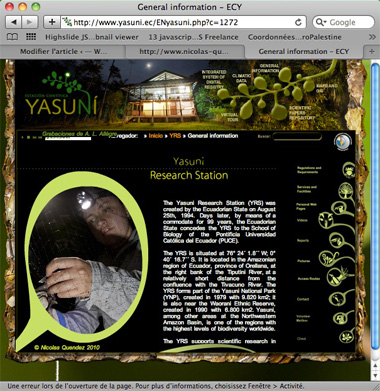 Le site internet 2011 de la Yasuni Research Station en Equateur au sein du Parc National Yasuni utilise les photos de Nicolas. Il présente également un diaporama de ses photos dans la section Videos.