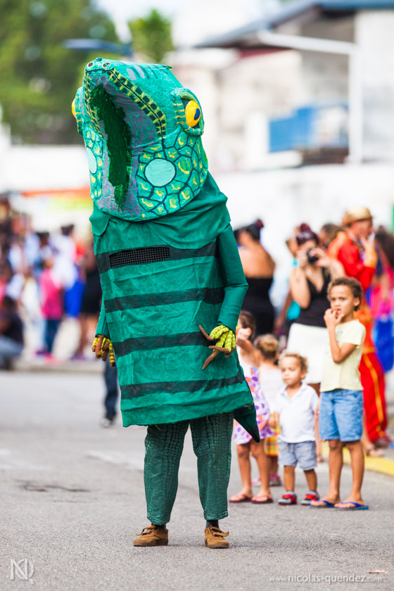 Quelques prises de vue de la parade du littoral à Kourou, un des grands moments du Carnaval de Guyane. Nous y retrouvons notamment la troupe Siliko, chez qui nous avons réalisé un reportage photo la veille au moment des préparatifs. Ne pas hésiter à me contacter si vous apparaissez sur une photo et que vous souhaitez récupérer le fichier numérique en haute définition.