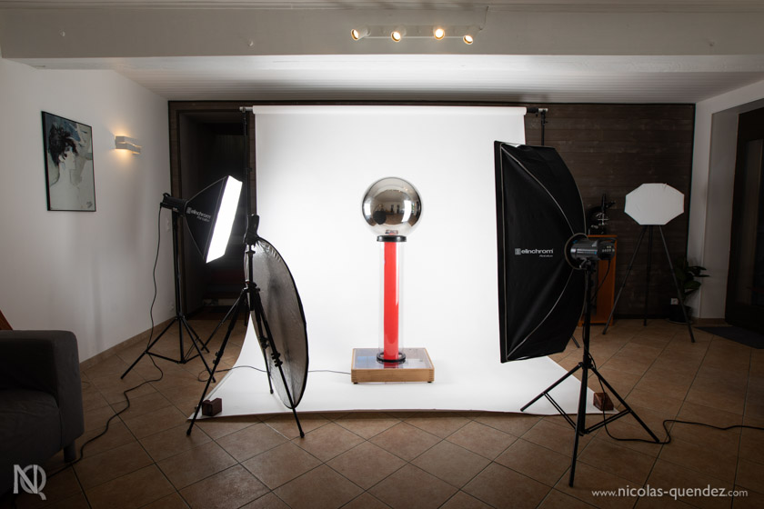 Studio photo mobile à Cussac dans le Médoc (Gironde). Equipé de fonds de 3 mètres de large et de l’équipement indispensable : flashs de studio Elinchrom équipés de boites à lumière, réflecteurs… En cours d’approvisionnement pour certains nouveaux accessoires.